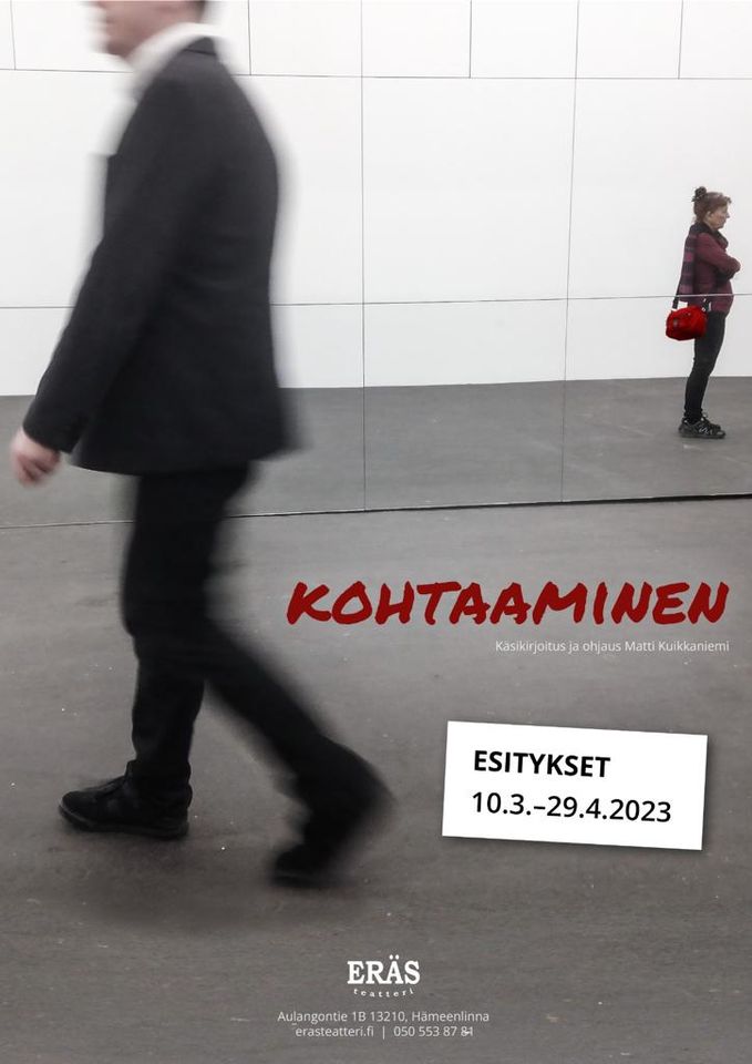 Hämeenlinnan Eräs Teatterin kevään ensimmäinen näytelmä, Matti Kuikkaniemen kirjoittamana ja ohjaamana näytelmänä Kohtaaminen ke 8.3.2023 tai 9.3.2023 klo 18.30.